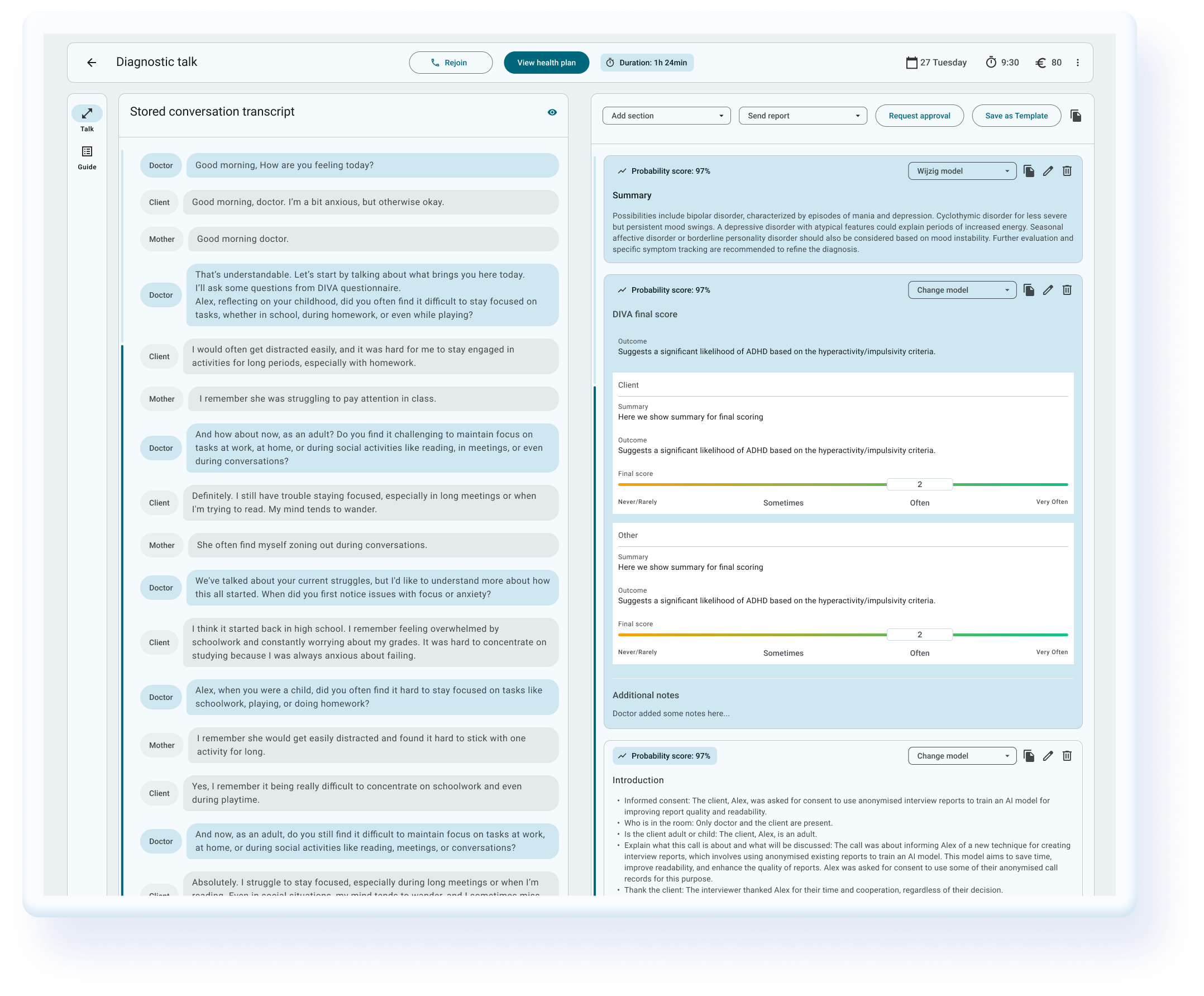- Tailored for mental health: From diagnosis to follow-ups, our platform is specifically designed to meet the unique challenges of mental healthcare.