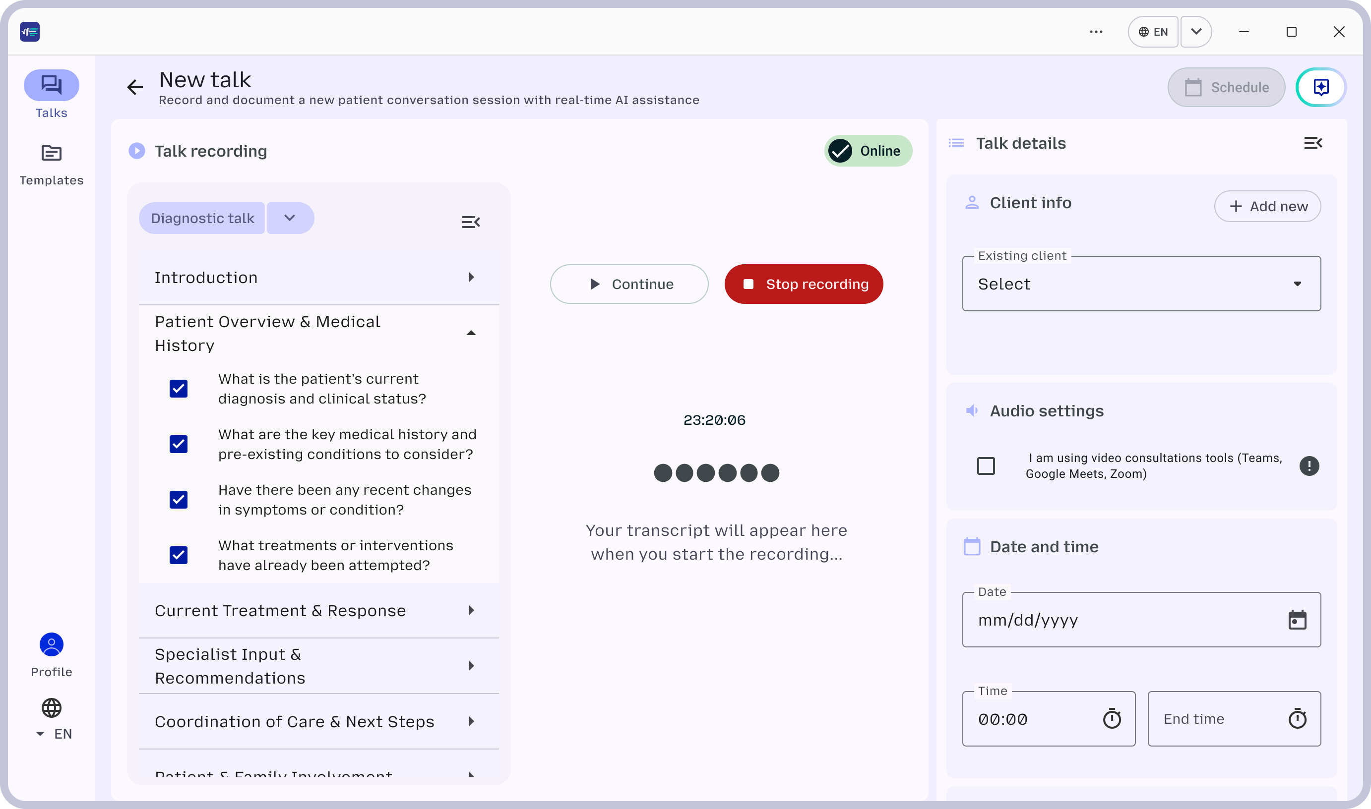 Ontdek hoe GGZ-professionals onze desktop app vormgaven. Van feedback tot functionaliteit - een kijkje achter de schermen bij HealthTalk.ai.