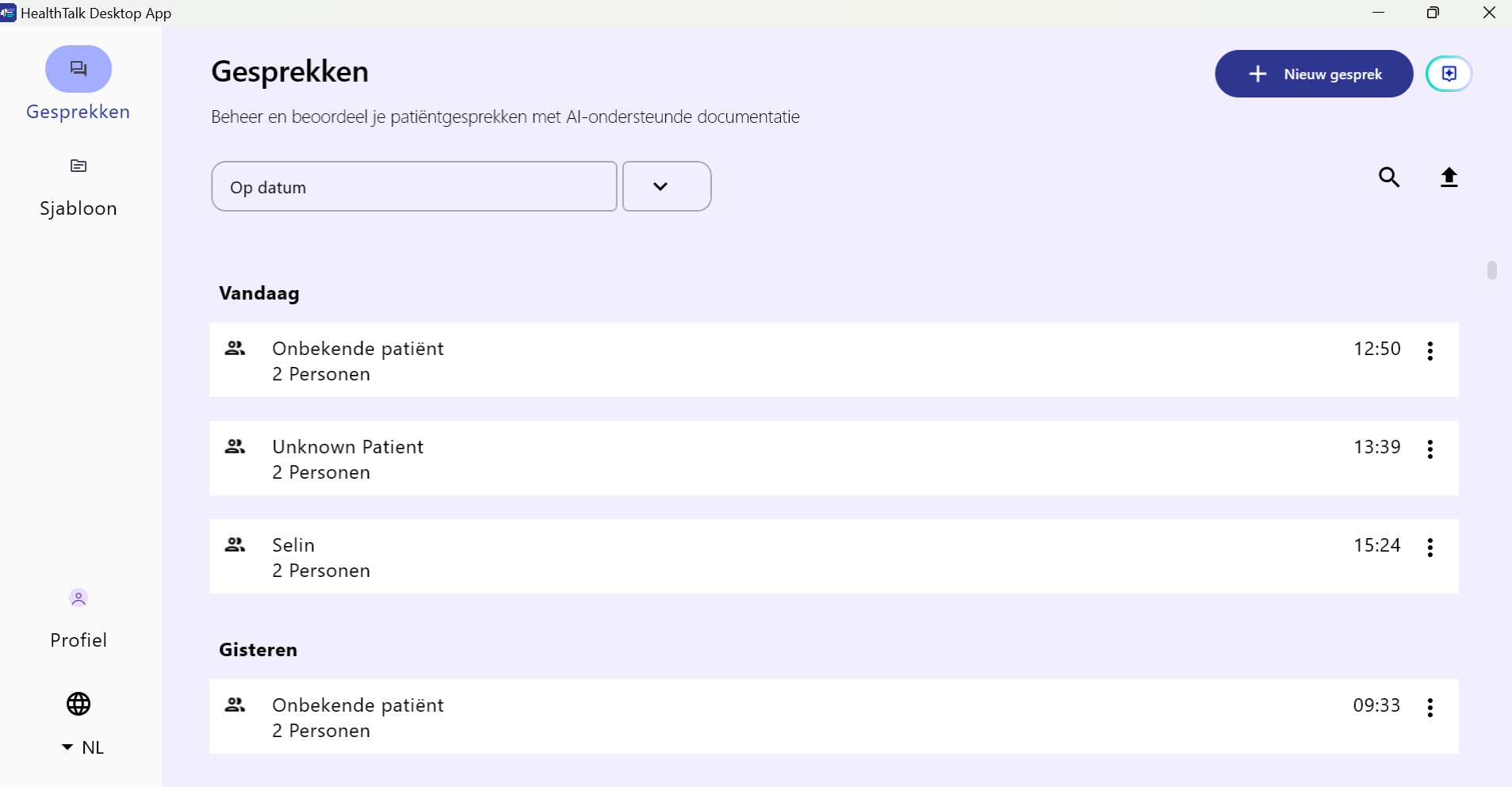 ⚠️ Let op! Check voordat je inlogt op welke taal de app staat ingesteld. Dit moet de taal zijn waarin je het gesprek gaat voeren, en waarvan je een verslag wilt.