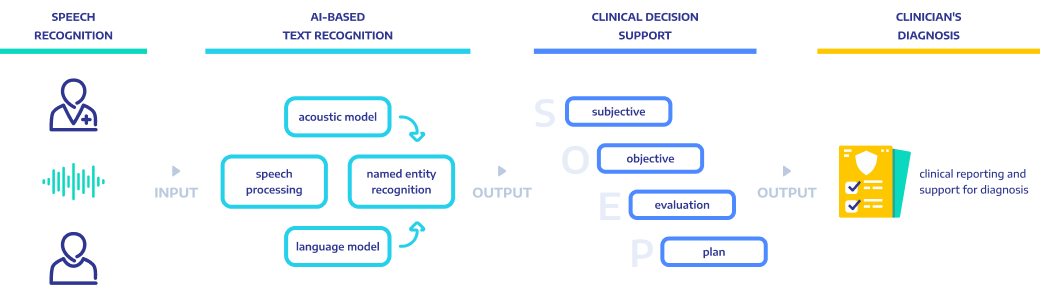 Com base nos vocabulários clínicos, criaremos o modelo SOAP (ou modelo SOEP em holandês) que será a entrada para cartas de pacientes e encaminhamentos que podem ser criados automaticamente ou ditados pelo provedor de saúde.